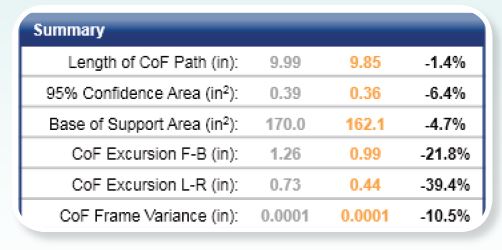 Conclusion: The end results reveal an improvement in balance and a reduction in sway for the client.
