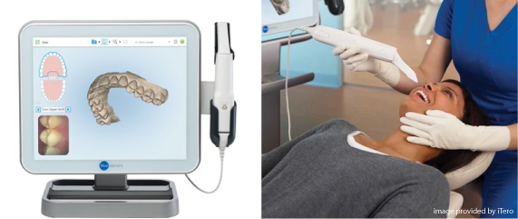 An intraoral scanner is essentially a wand that is inserted into the patient’s mouth for a few seconds that scans the mouth using one of various light beam technologies, depending on the model. These scans generate a 3D digital model of the patient’s teeth to be viewed on a computer or tablet.