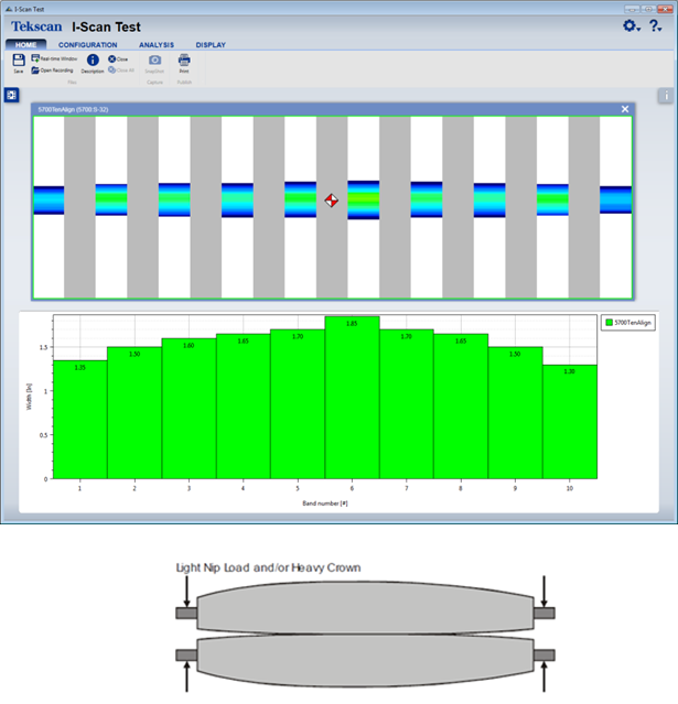 The software included has an easy-to-use interface that allows for fast and efficient machine set-up. It has a streamlined set of features that allows the user to easily identify nip uniformity. The pressure distribution across each band is displayed and can be saved as a snapshot of the image. More features include: